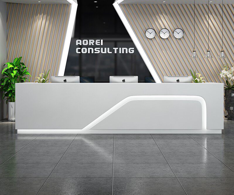 Custom company paint front desk reception desk new products with lights bar table beauty salon training organization hotel welcome desk