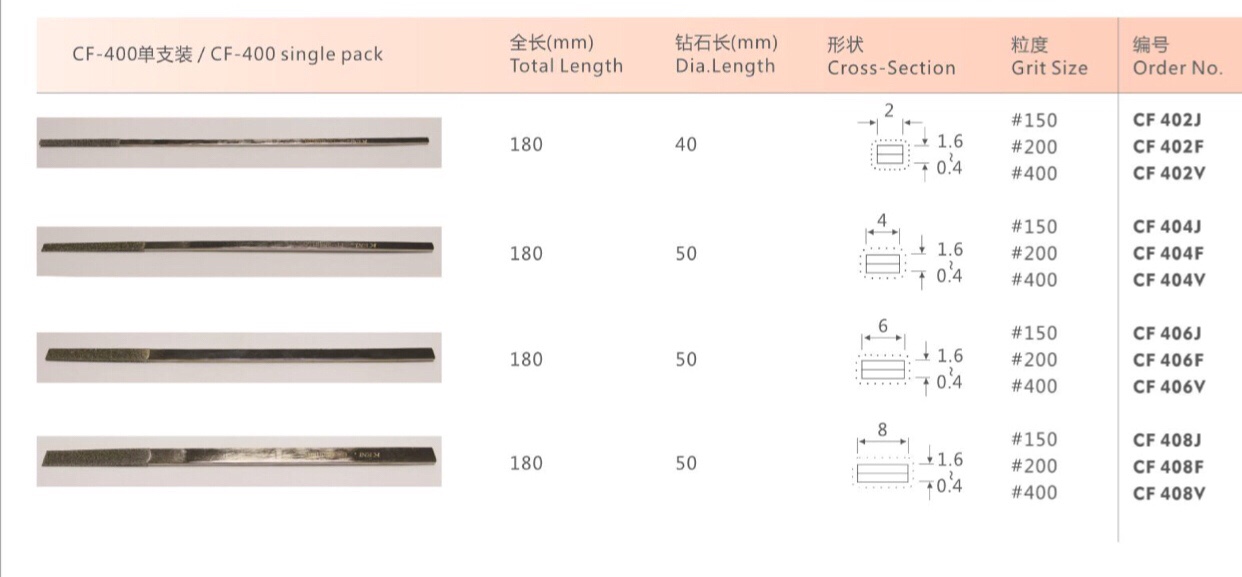 Taiwan KENI with shank CF_400 diamond filing knife alloy diamond flat skew filing polished finishing filing suit