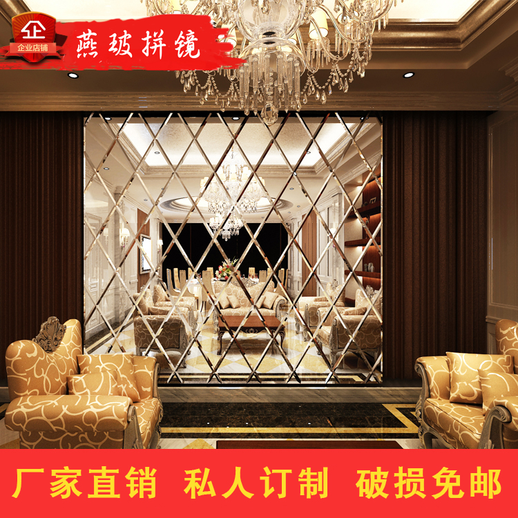 Art Glass Decoration Mirror TV Dining Room Background Wall Custom Rhombus Parquet Glass Background Wall Tea Mirror Grey Mirror