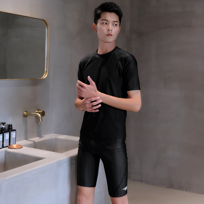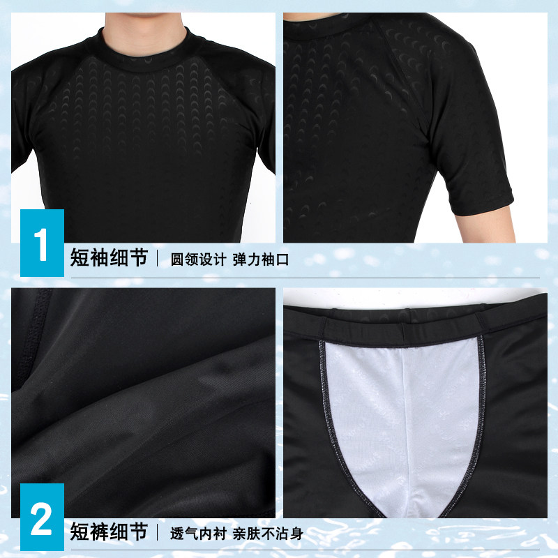 Swimming trunks men's five-point shark skin quick-drying hot spring large size swimming suit Swimming cap Goggles men's swimming suit equipment