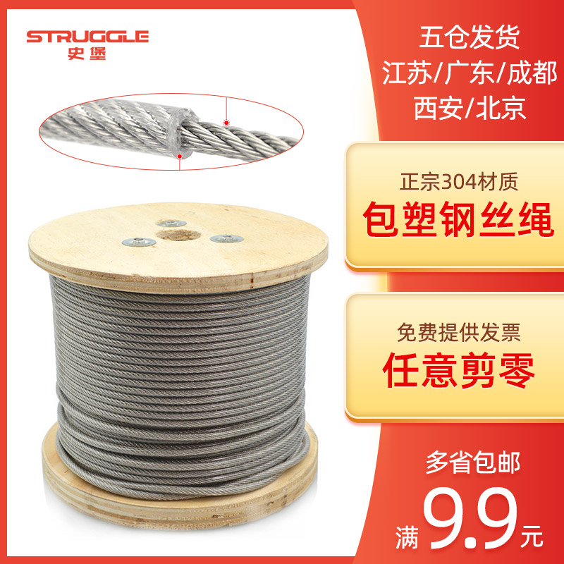 304 stainless steel plastic-coated steel wire rope transparent clothesline plastic-coated thin soft rope 1 2 3 4 5 6 8mm