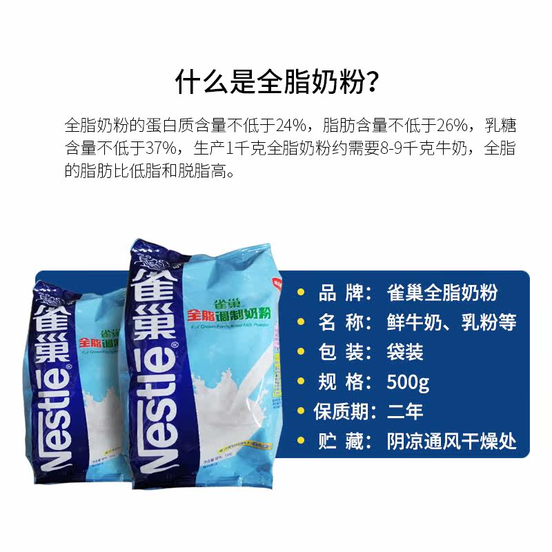 Nestle full-fat milk powder biscuit bread baking raw material full-fat modulation milk powder nougat raw material 500g commercial
