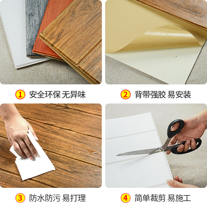 3d solid wall sticker background wall decorative wall wallpaper self-adhesive wood grain bedroom waterproof moisture-proof foam can be scrubbed