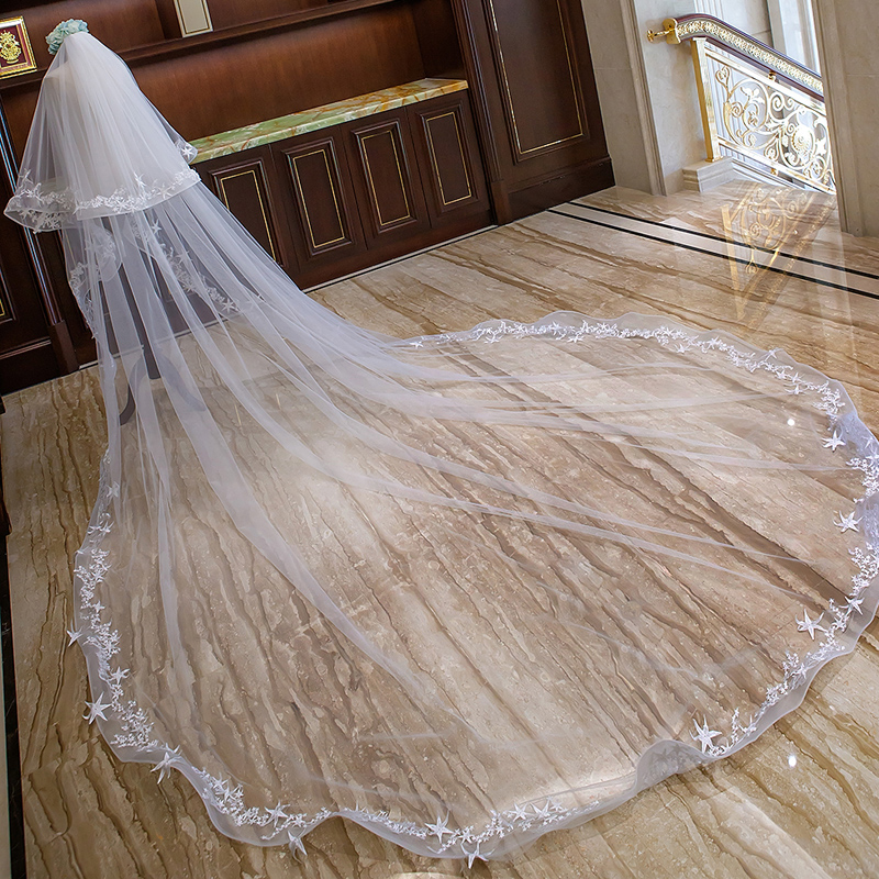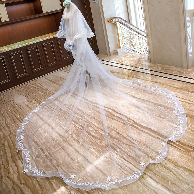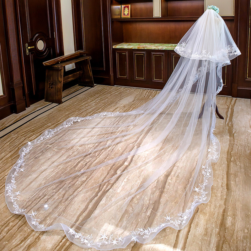 Champagne starred head yarn female brides super-long trailing wedding dresses wedding dresses headwear head decorated with long version of supersenssen white