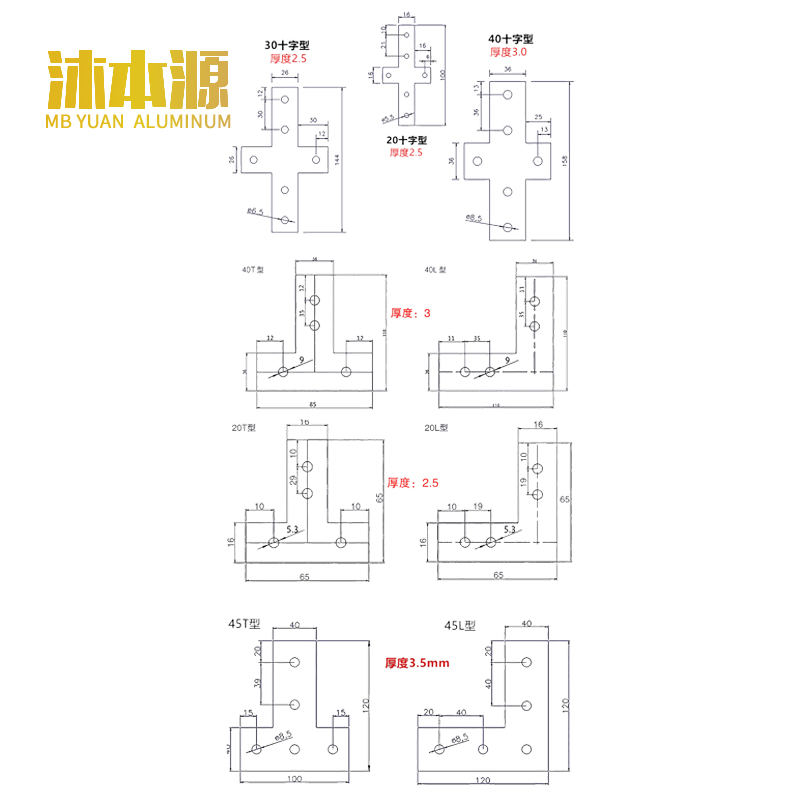 Industrial aluminum profile parts T type L cross connecting plate 20 30 40 45 sheet metal strengthened support fixed parts