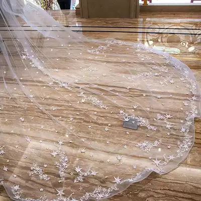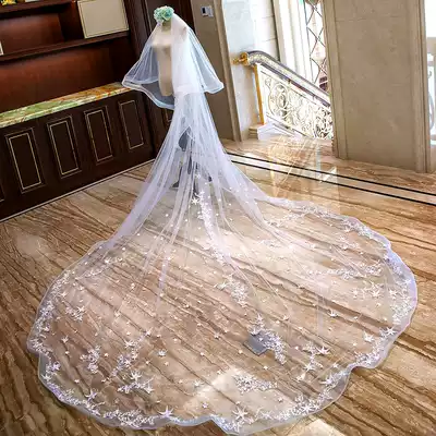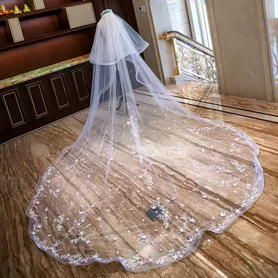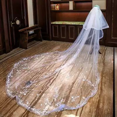 Champagne star yarn female bride super long tailed wedding dress wedding veil long version Super fairy White