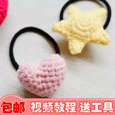 Original design wool knitting crochet zero-based entry couple handmade material bag love five-pointed star hairpin ring