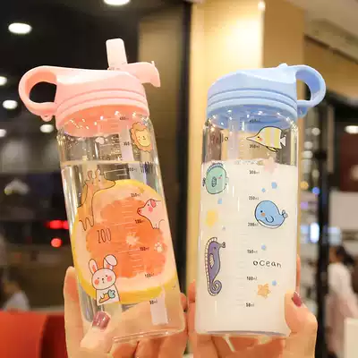 Pregnant woman Glass suction cup student couple casual Cup heat-resistant explosion-proof creative with scale cartoon children's water Cup