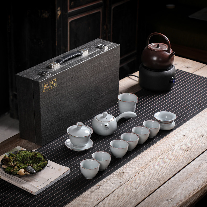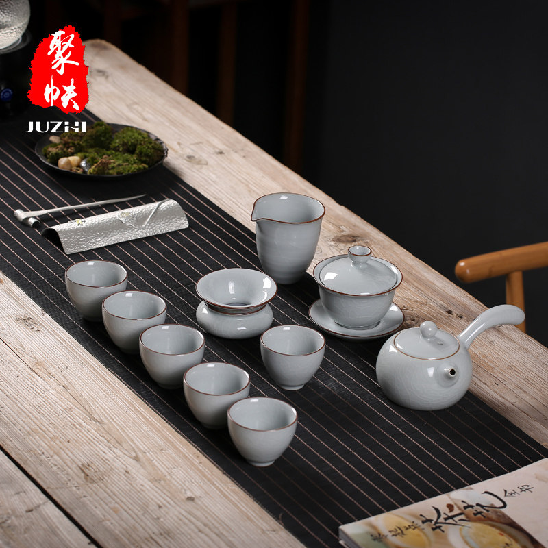 Ru Kiln Moon White-10 head side handle Ru kiln Tianqing-10 head side handle Ru kiln Light blue-10 head side handle Ru kiln Moon white-15 head Shih Teapot Ru Kiln Tianqing-15 head Shih Teapot