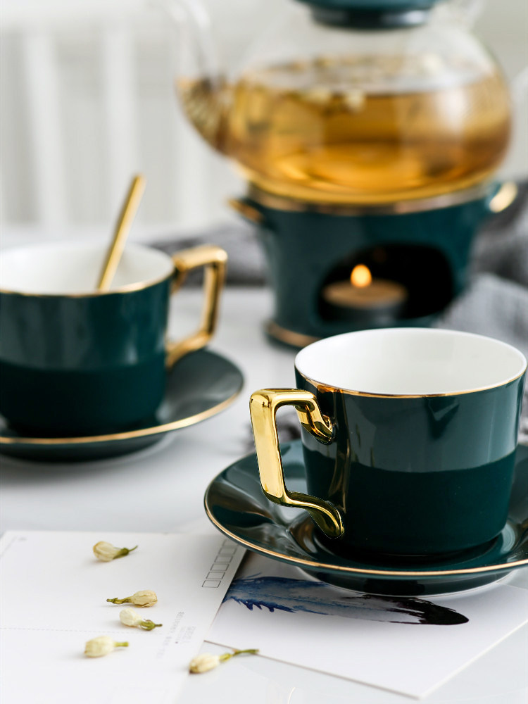 Nordic simple and light luxury emerald green Phnom Penh English afternoon tea tea set European coffee cup saucer tea set ceramics