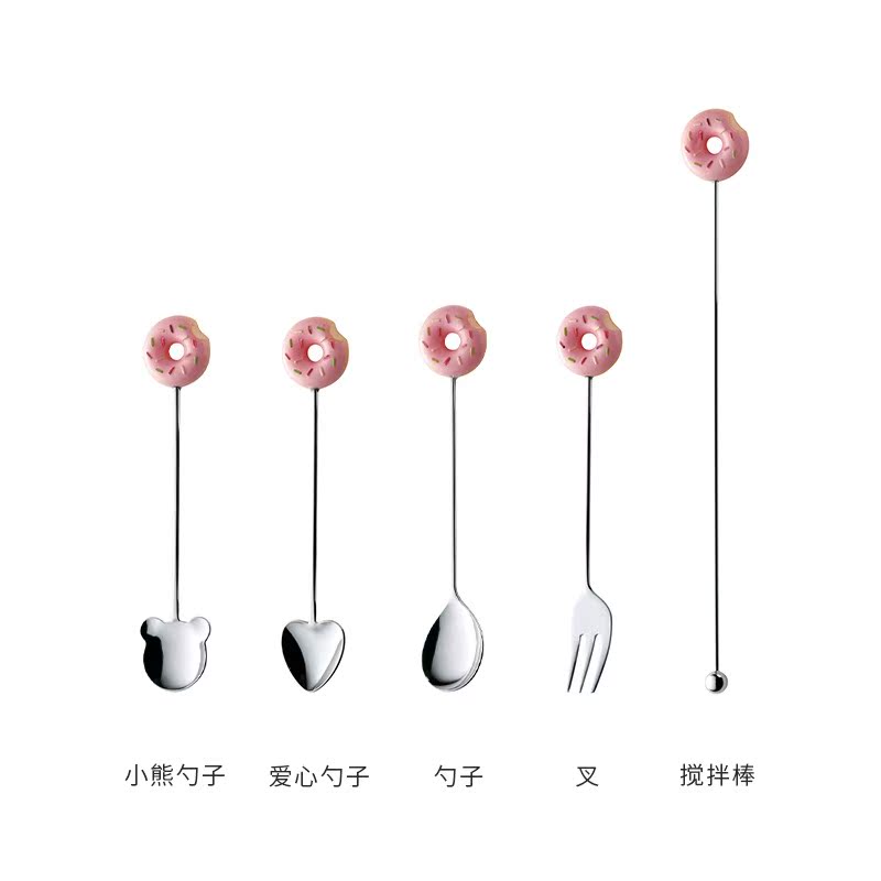 Japanese elfin donut dessert spoon creative cute milk tea coffee stirring stick spoon stainless steel long handle set