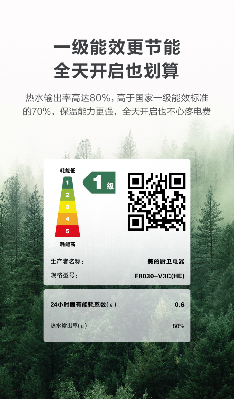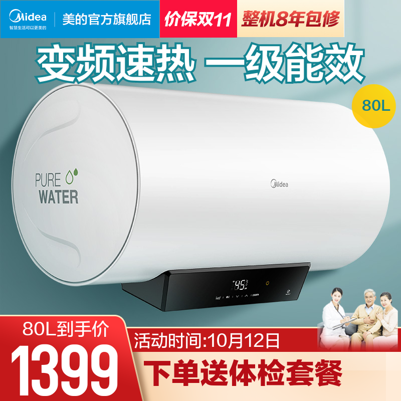 Midea's 80L liter V3C water storage type inverter speed thermoelectric water heater electric household bathroom bathing smart home appliances