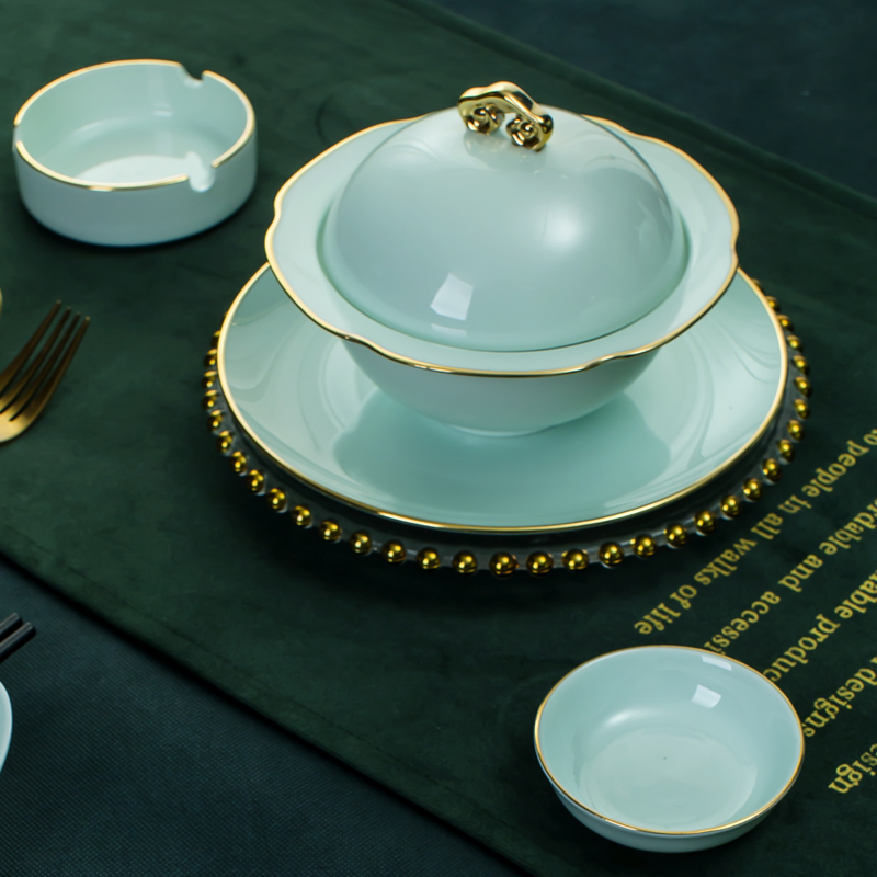 Coffee cups 1 set of state banquet cover 1 cigarette ash tray 1 chopstick rack 1 towel disc 1 upscale office water glass with saucer 1 small soup spoon 1 toothpick holder 1 water