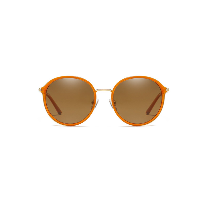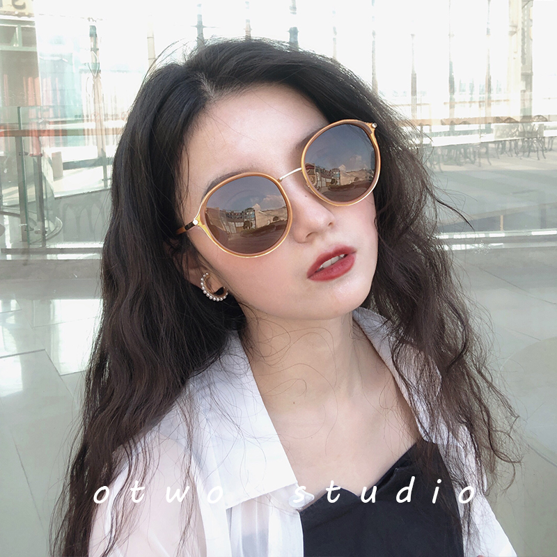 Brown ins Korean version of women's travel polarized sunglasses Large long round face oval orange border sunglasses versatile