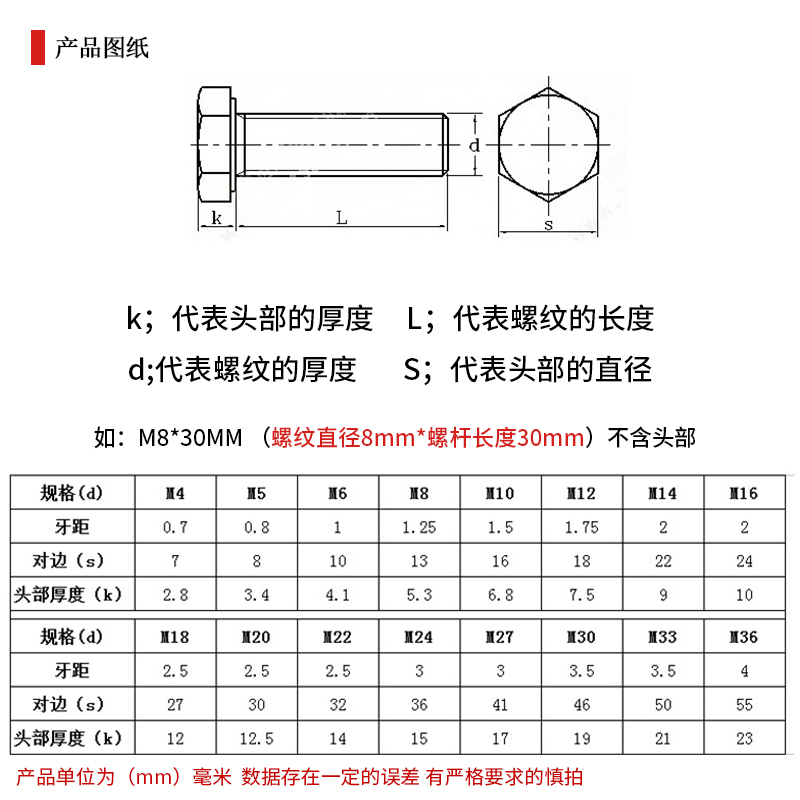 12mm Outer hexagonal screw 304 stainless steel DIN933 bolt flat slingshot mother combination suit M12 * 16-200mm