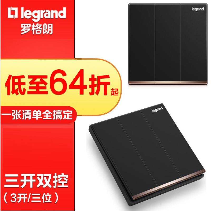 TCL Roglang Comfort View Black Triple Open Double Cut three double cut panels Home Three light switches 3 open walls