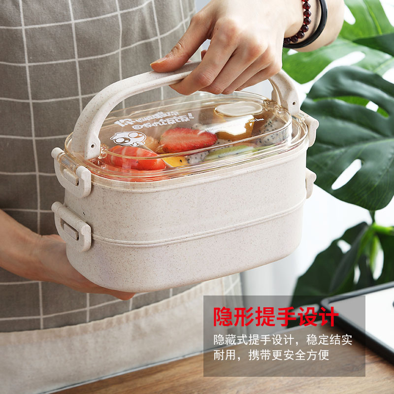 Insulation bento box Cute girl heart office worker Microwave oven heating bento box Student portable grid double-layer lunch box