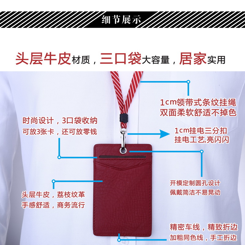 Casheda Hot Pin VIP Guest Certificate Protective Sheath Bus Meal Cutting Card Niu Leather Students School Card Cutting Sleeve Work Card Work License to do scalding gold and silver pressing concave leather sheath Conference certificate attendance certificate with lifting rope