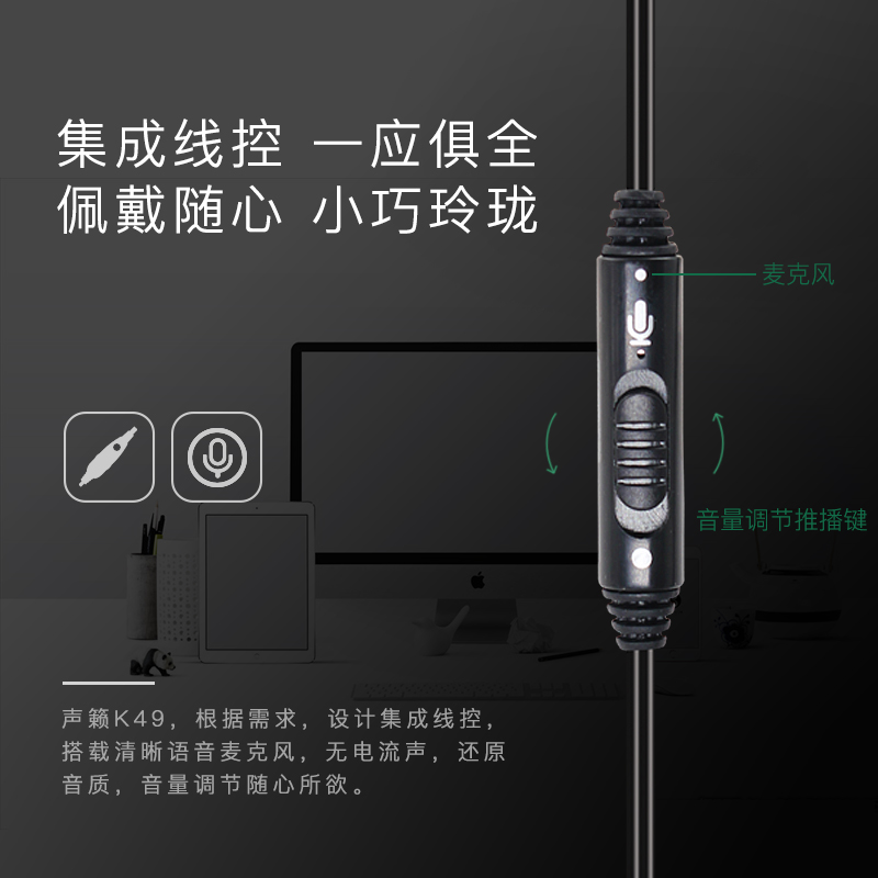 Acoustic Music K49 Computer In-ear Headphones Gaming Heavy Bass Desktop Notebook Headwear Style Eating Chicken Ears Macnet Cafe electric race with microphone male and female universal lengthening line with microphone