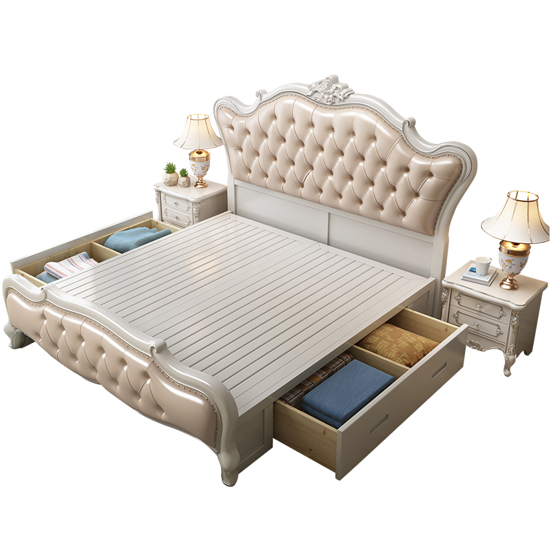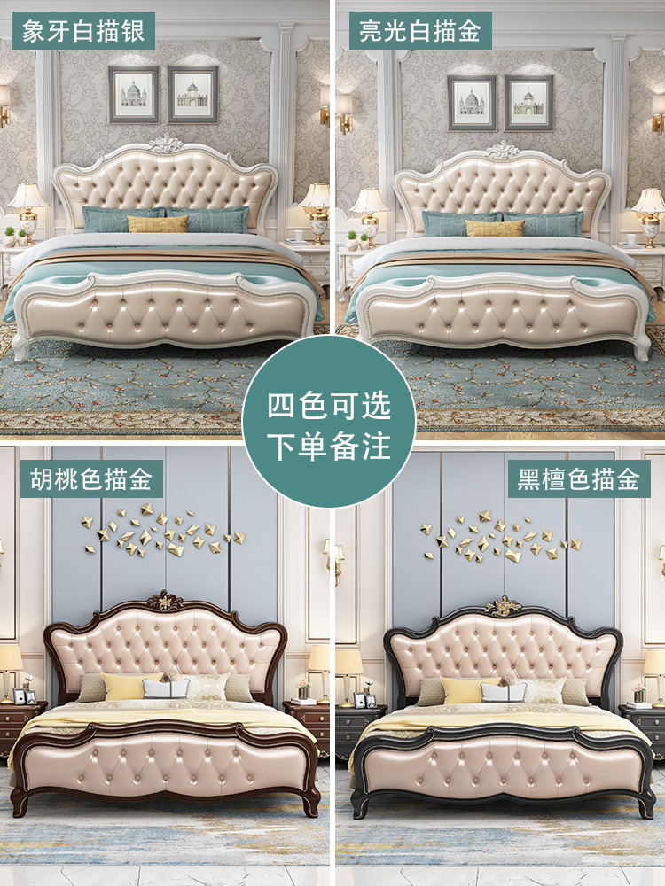 European-style bed all solid wood bed 18m double bed master bedroom leather bed modern minimalist wedding bed simple European princess bed