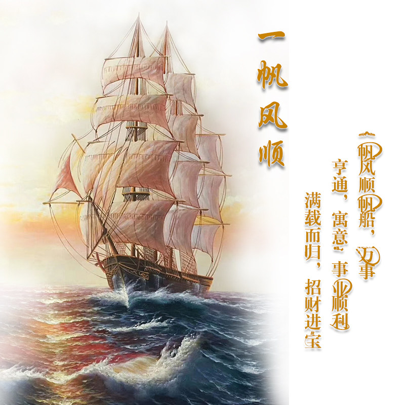 Modern hand painted oil painting Living room Scenery Hang Painting Handmade One Sails Smooth Sea View Sailing Painting Vertical version Xuanguan Decorative Painting