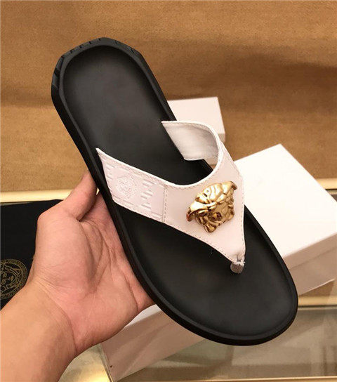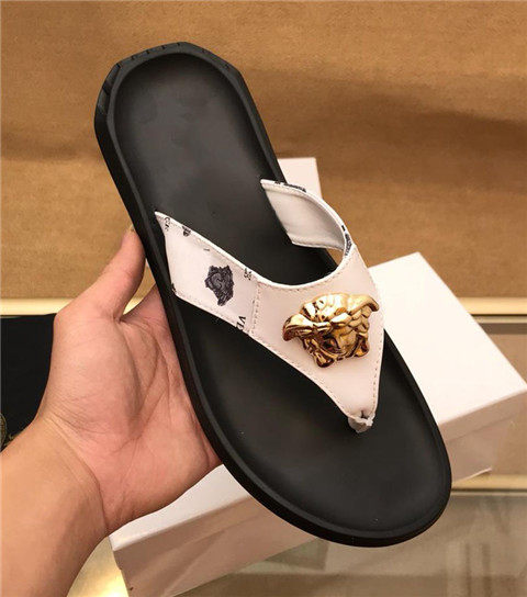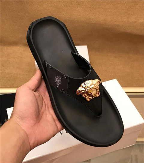 Summer tide men's sandals Vasaki leather leather flip-flops personality Medusa Korean version casual non-slip beach shoes