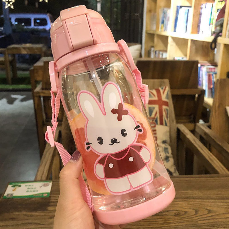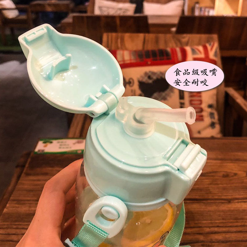 Large-capacity student kettle portable cute straw cup baby summer water cup children's plastic drinking cup leak-proof