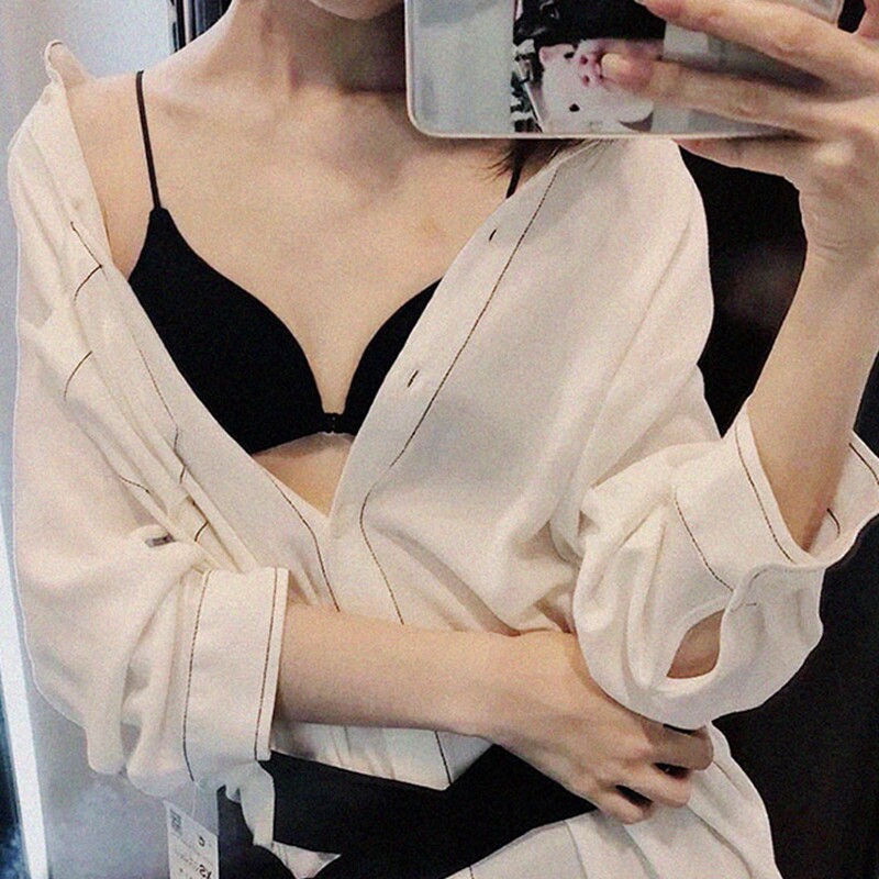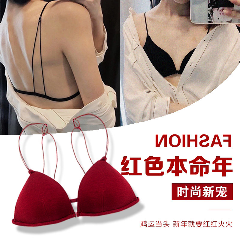 Japan Beauty Back Underwear Woman no steel ring on thin band Sexy Flat Chest Invisible Front Buttoned Triangle Cup Bra