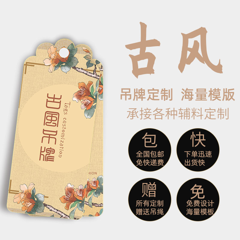 Han Fu Ancient Wind Hanging Card Conformity Certificate Customized China Wind LOGO Design High-end Clothing Price Tag Listed to Do-Taobao