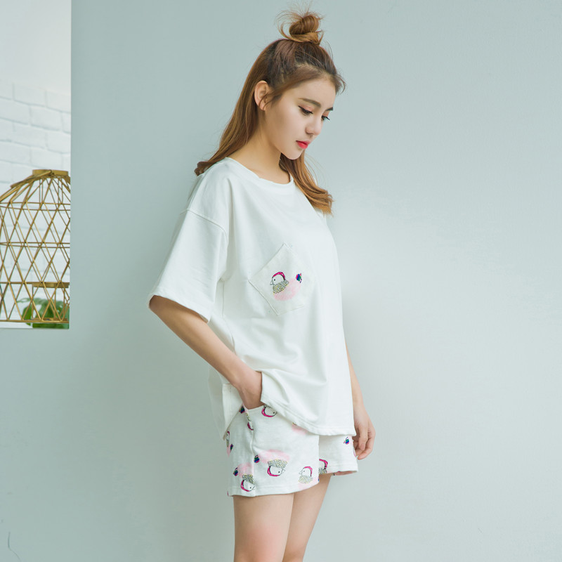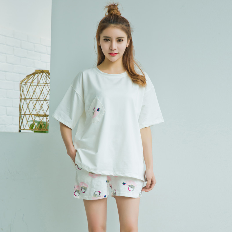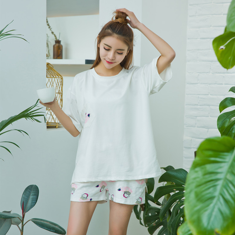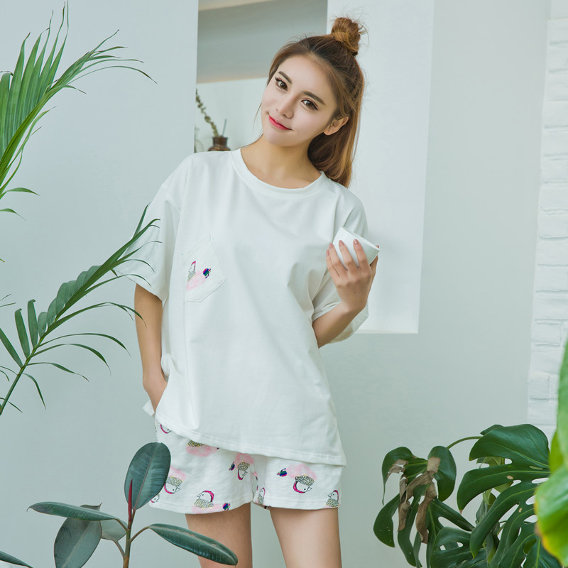Sleepwear Women Summer Pure Cotton Cute Cartoon Teenage Girl Short Sleeve Korean Version Sweet Beauty Cute Thin full cotton Home Residence Suit Suit