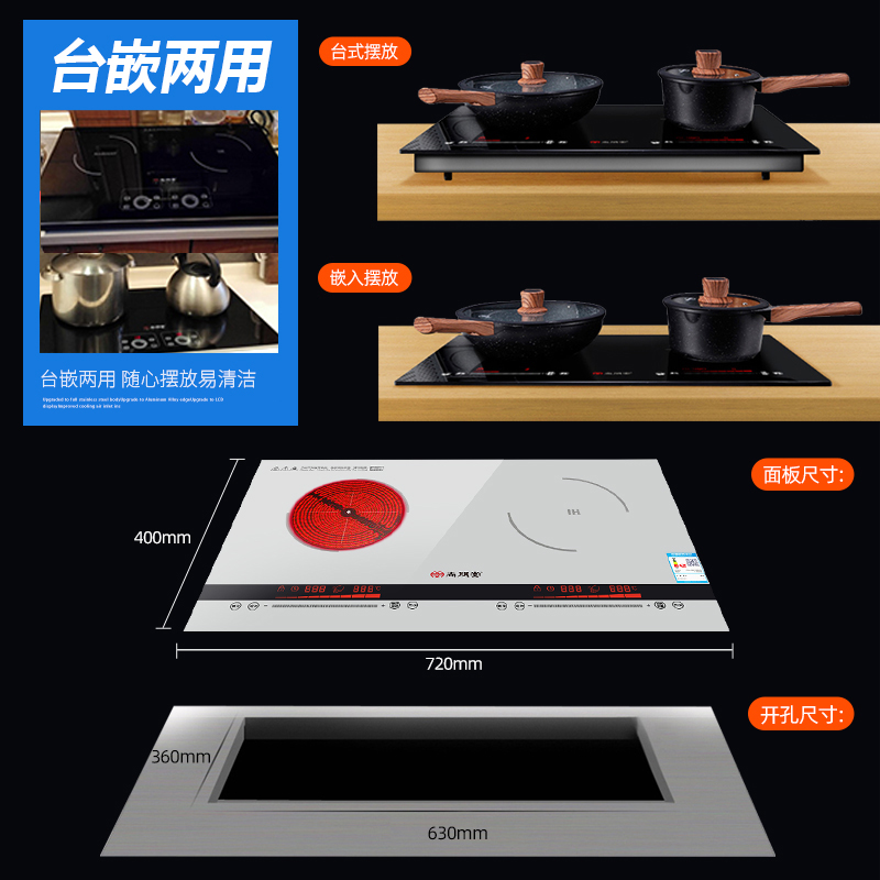 Shangpengtang double-head induction cooker black crystal cooker induction cooker one electric one pottery combination table inlaid two-port gas cooker induction cooker