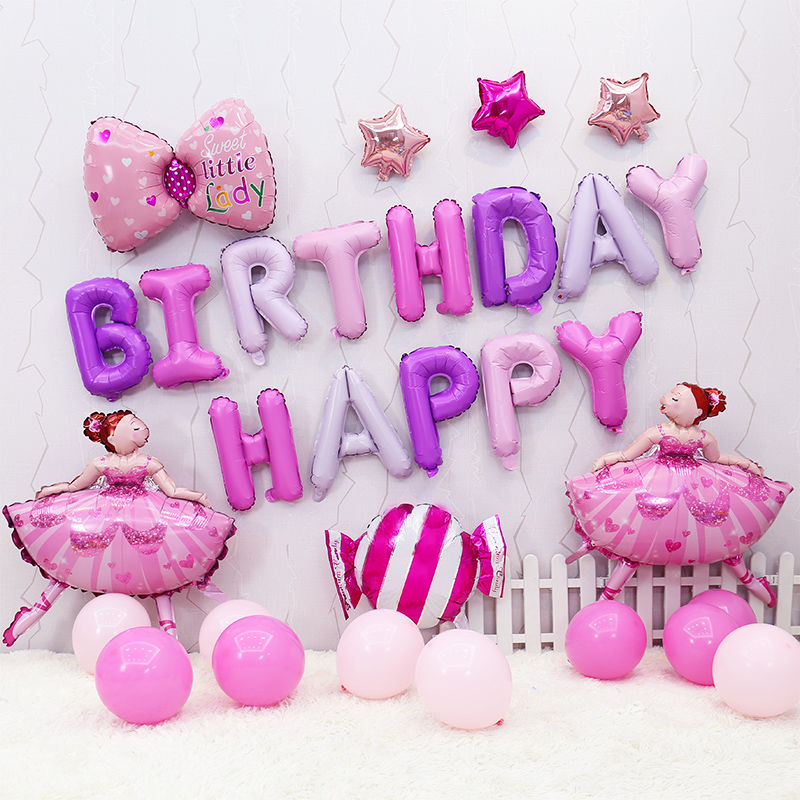Baby's first birthday decoration Children's theme package Boy girl party background wall balloon decoration scene