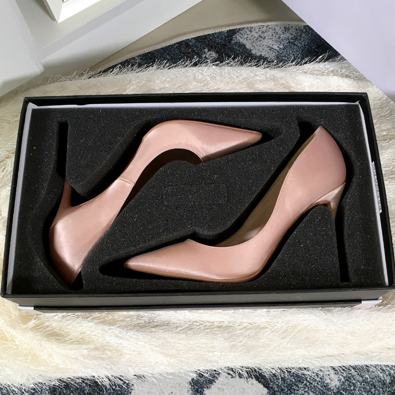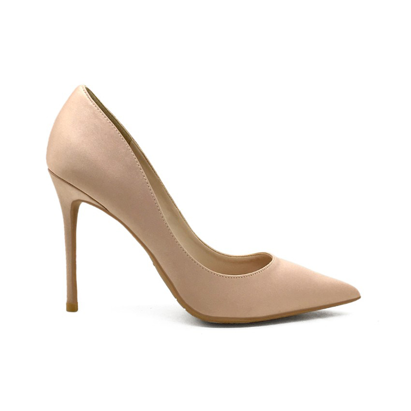 2021 new spring silk satin face nude color teenage girl pointed high heel single shoe light color heel dress with adult wedding dresses