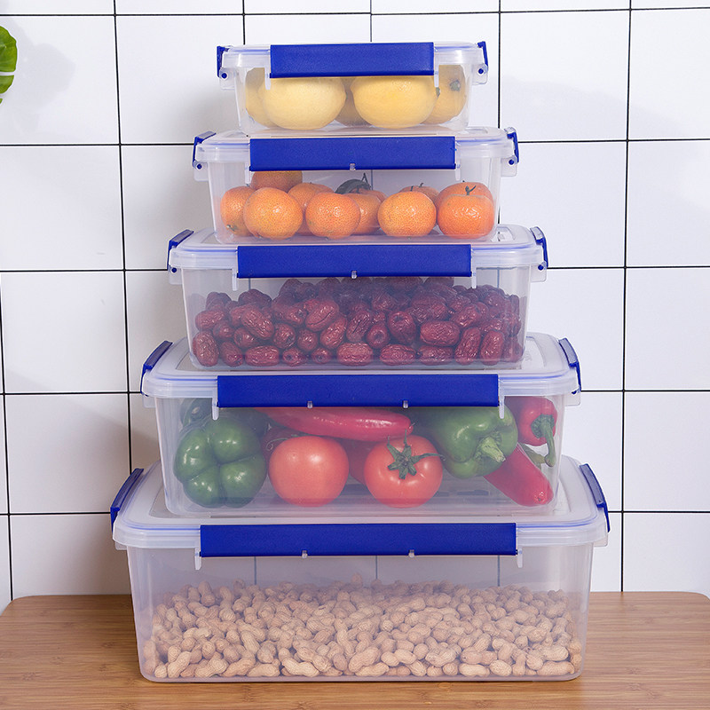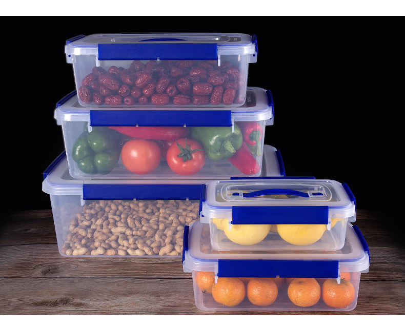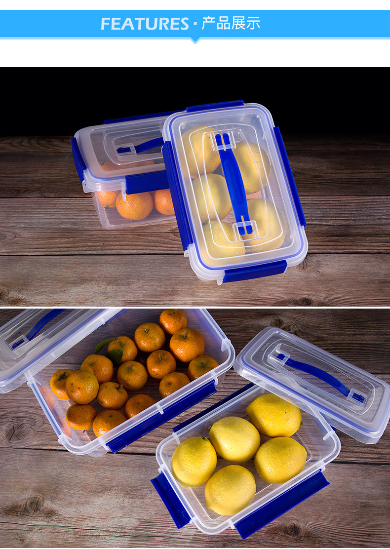 Handheld plastic rectangular fresh box thickening quad button refrigerator container box commercial large-capacity food box