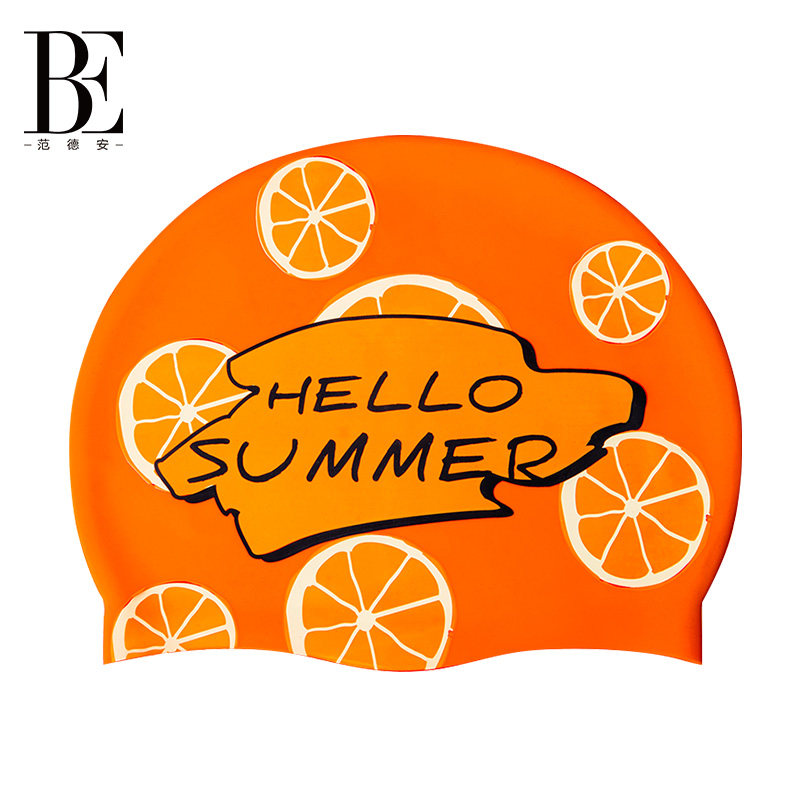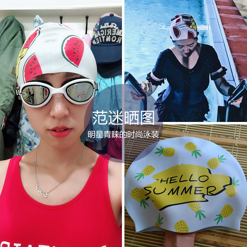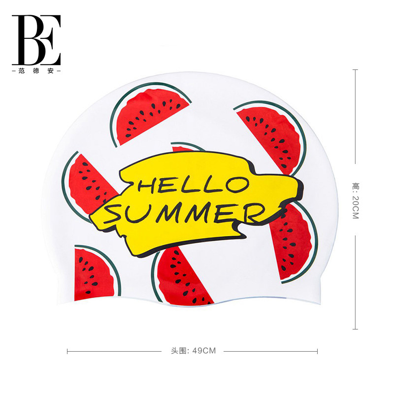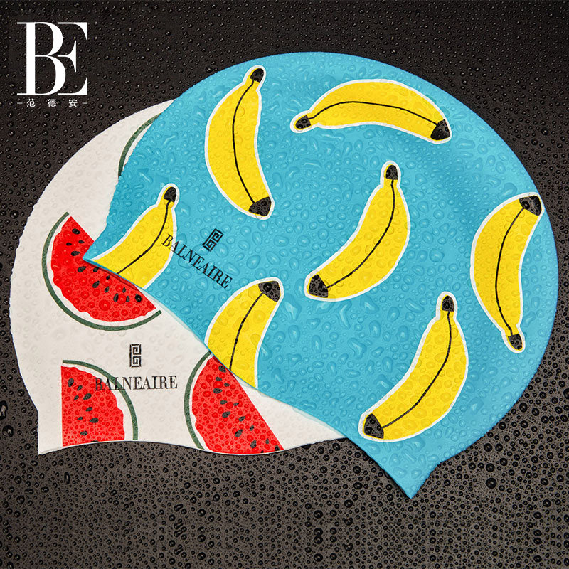Van Der Anbathing Cap Woman Professional Waterproof Silicone Gel Fashion Printed Long Hair Protective Ear without Le Head Fruit printed swimming cap-Taobao