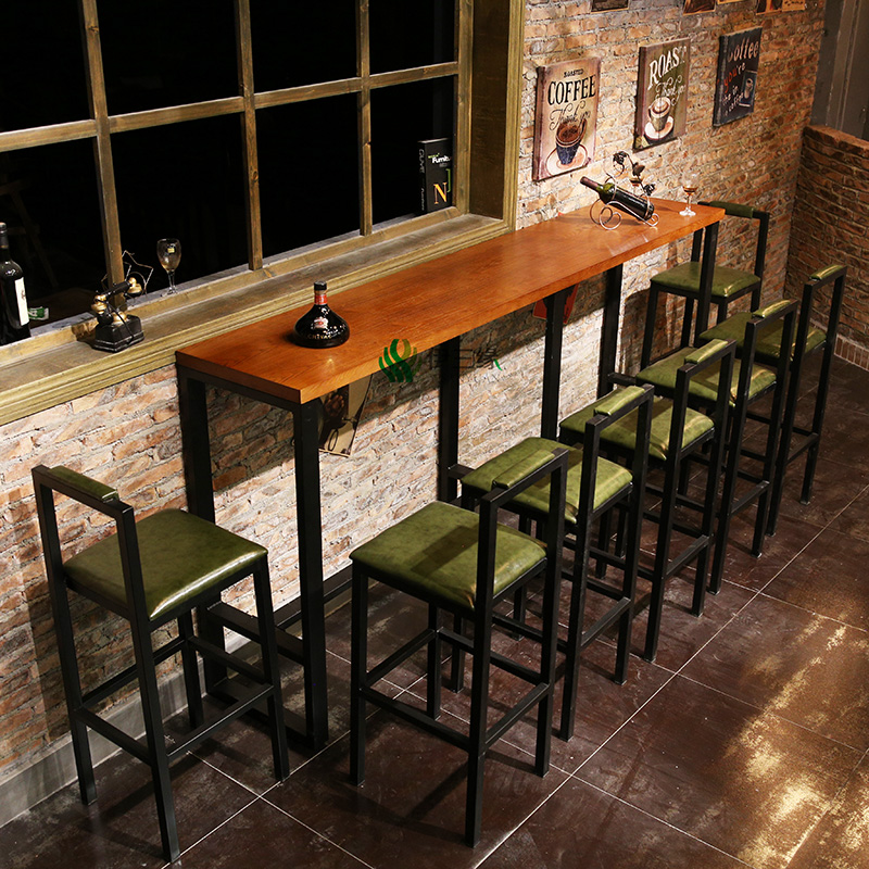 Net red solid wood household bar table Simple small narrow table Milk tea shop wall bar table High foot table and chair combination