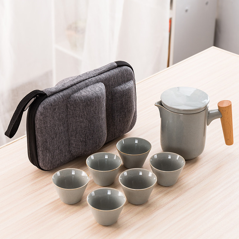 Portable Quick Cup One Pot Six Cup Japanese Ceramic Travel Kung Fu Tea Set With Bag Outdoor Car Teapot