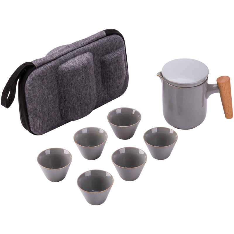 Wooden Handle Travel Pack One Pot of Six Cups Elegant Grey Wooden Handle Travel Pack One Pot Six Cup Matte Black