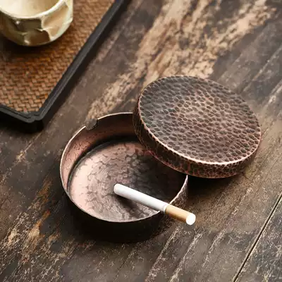 One Ji handmade Japanese hammering hammer pattern red copper ashtray home creative retro ashtray ornaments modern tea room