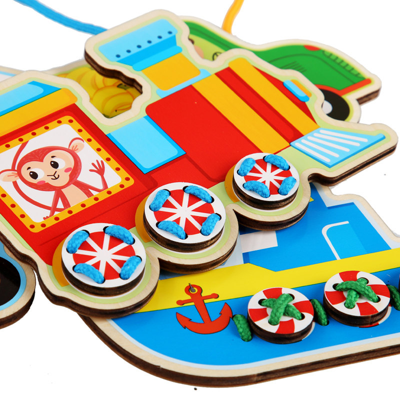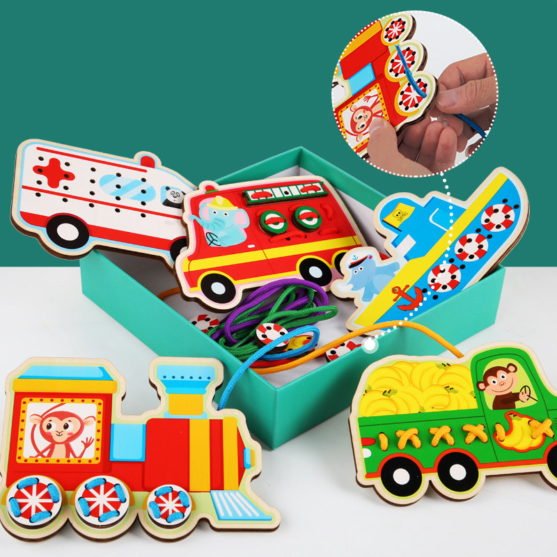 Children's building block rope toys 1-2-3-4-5 years old baby puzzle hands-on rope threading benefit intelligence early education