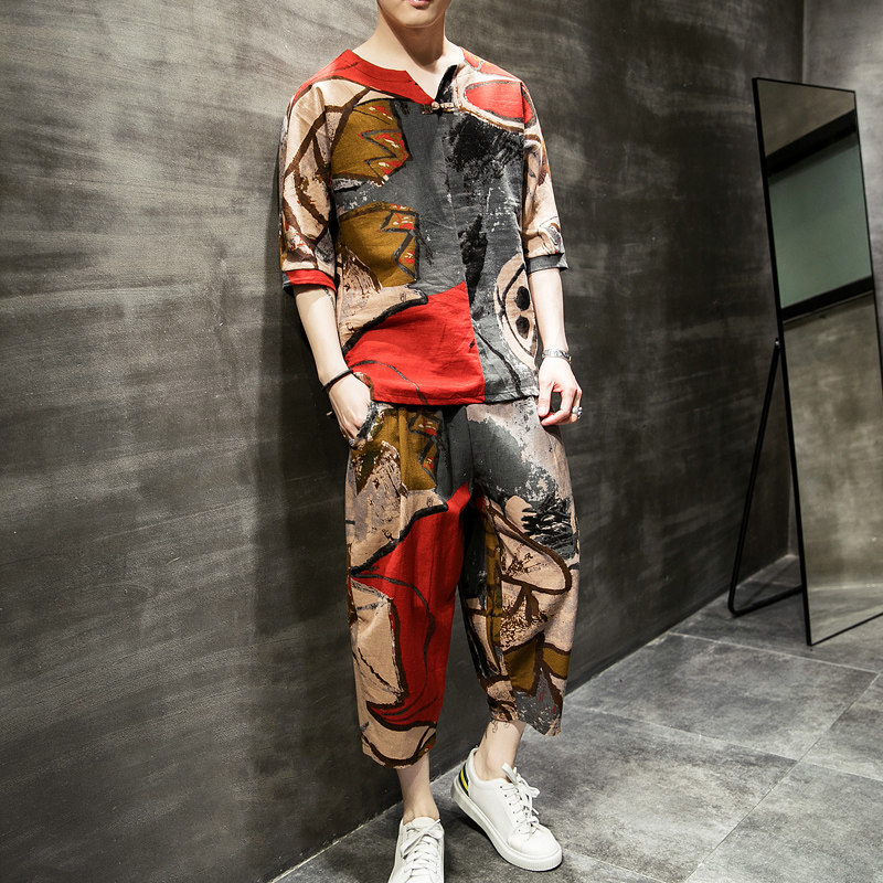 Tang Loaded Male Youth China Wind Big Code Hanfu Men's Gufeng Linen Suit 70% Sleeve Jacket Chinese Zhongshan Installed Tide-Taobao