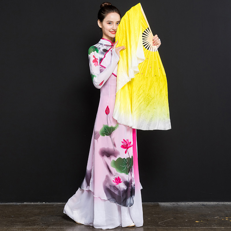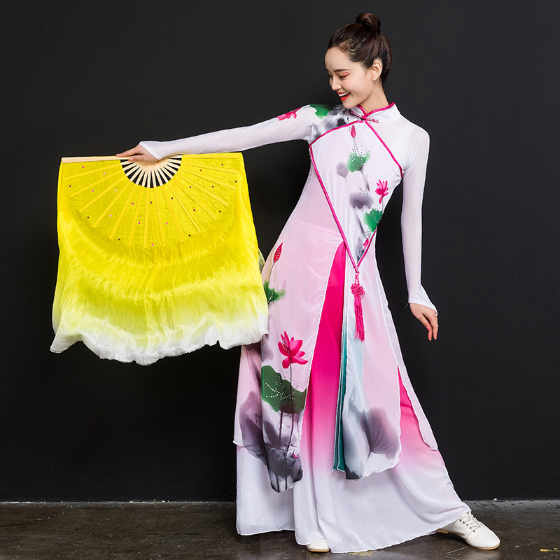 Real Silk Dance Fan Dancing Fan Lengthened Silk Fan Square Dance Fan Twisting-Transplanting Song Fan Bifacial Adult Performance Fan