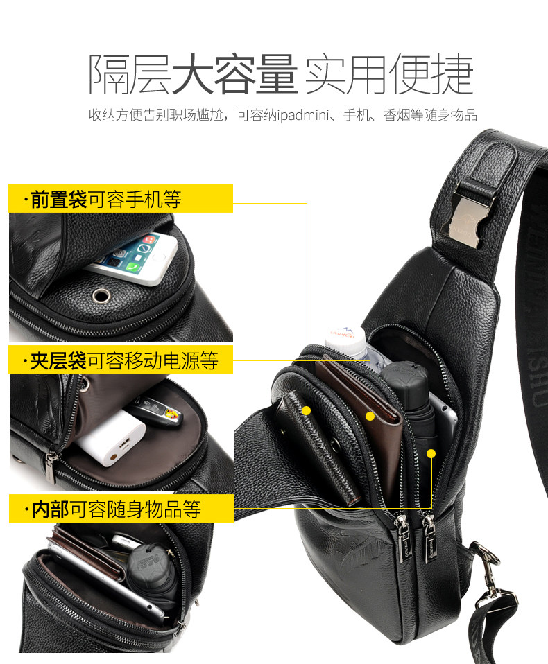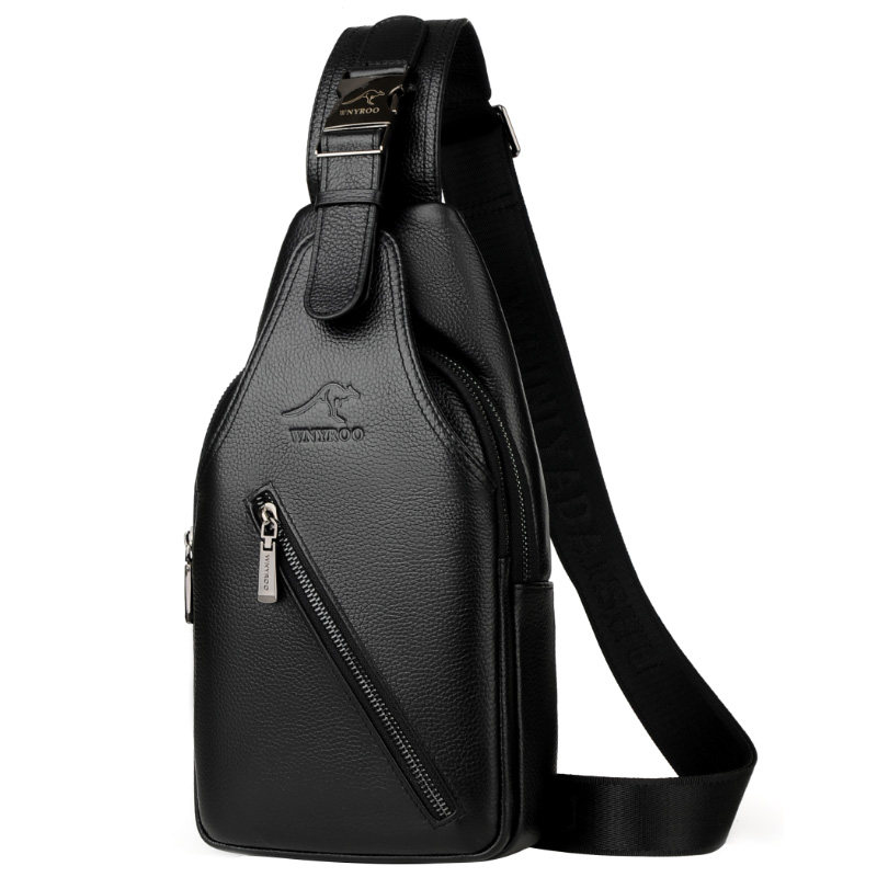 Wiña Kangaroo Chest Bag Men Genuine Leather Men's Bag Bag Single Shoulder Sloped Satchel Wave Casual New Chest Front Bag Men's Bag