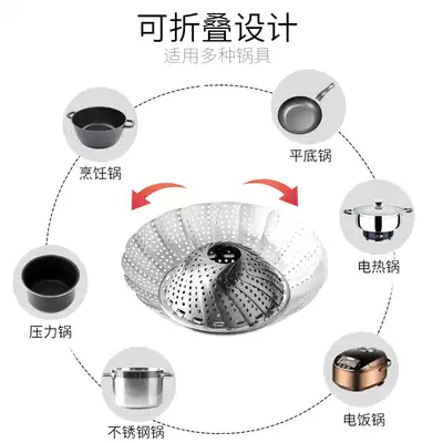 Stainless steel steamer Household electric electronic pot steaming rack universal steaming bun grate multi-function telescopic folding steaming plate