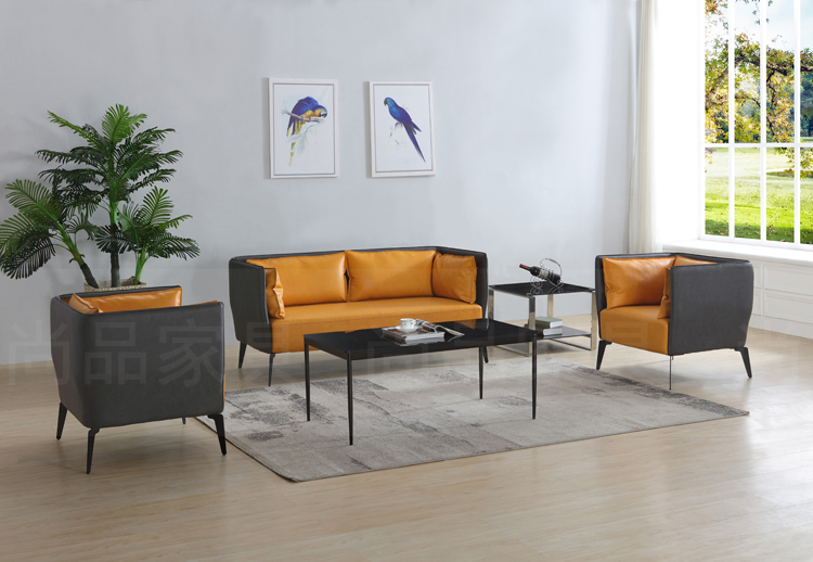 High-end atmospheric office sofa coffee table combination American retro industrial style sofa reception office sofa