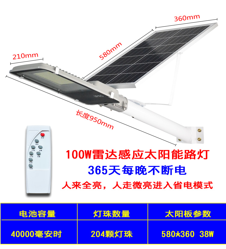 Light Can Lighting Radar Human Body Induction Solar Street Light 100W Home Outdoor Waterproof Garden Light Solar Light