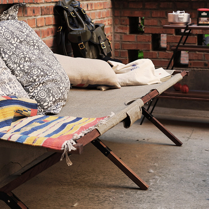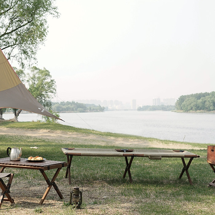 HK Shiliang Shop Single folding bed Black walnut solid wood Pepper Salt retro portable outdoor camping table