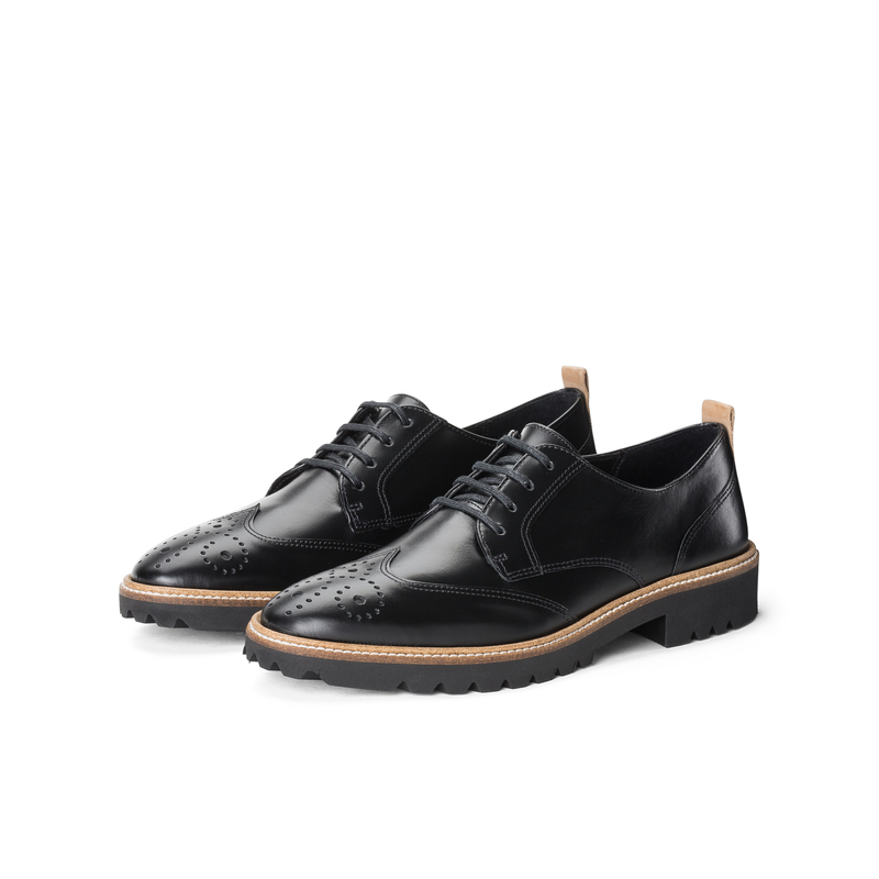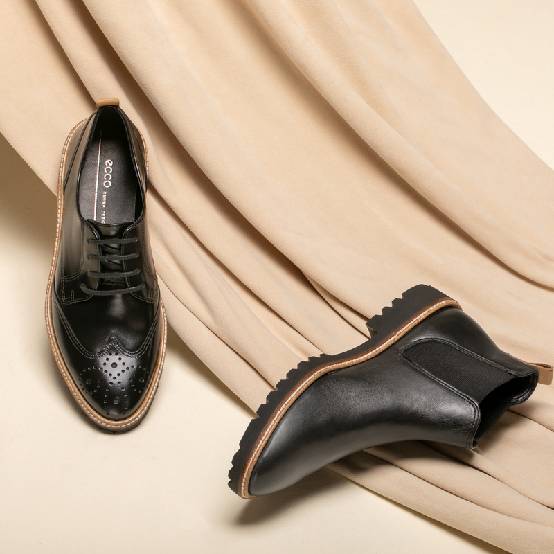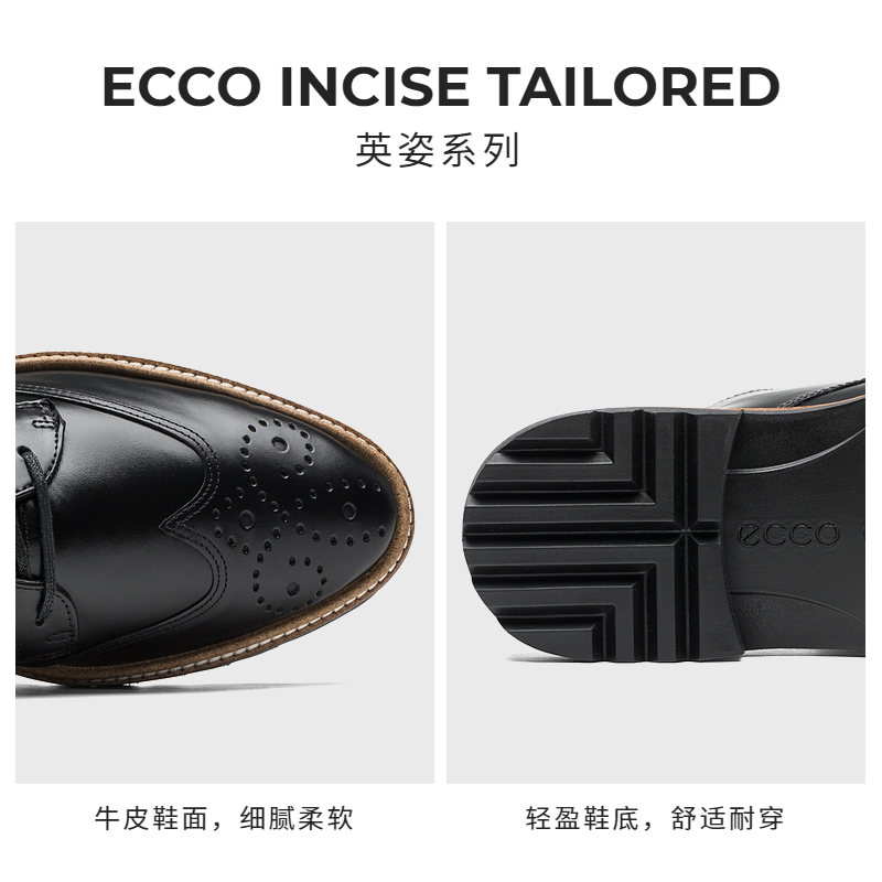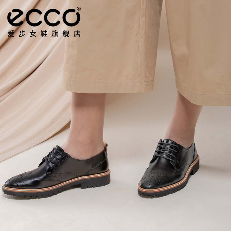ECCO love step British small leather shoes women black thick heel professional dress women's shoes casual shoes women's heroic 265833