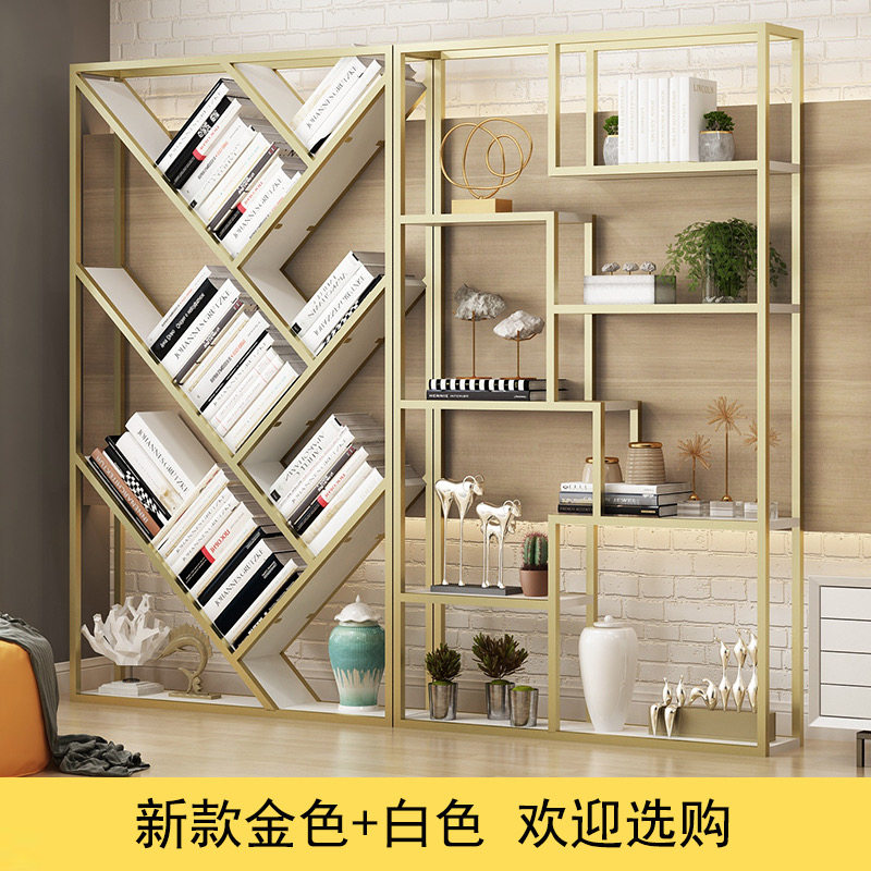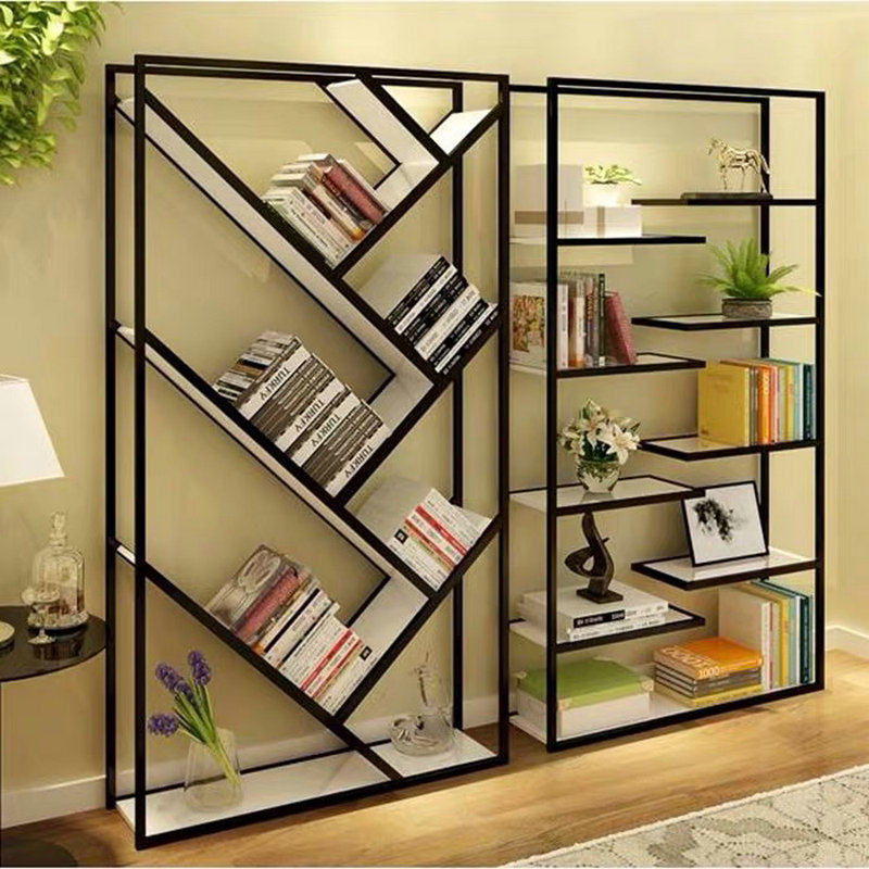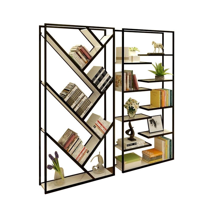 Loft wrought iron bookshelf floor rack solid wood living room display rack partition decoration rack office combination bookcase