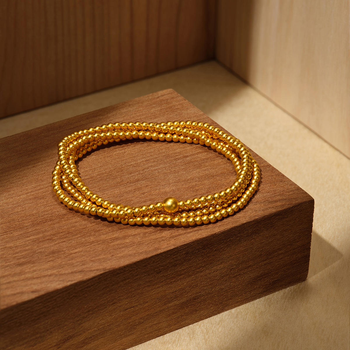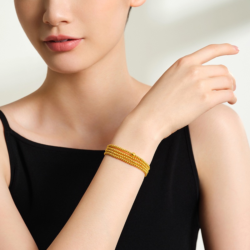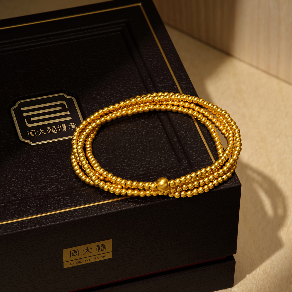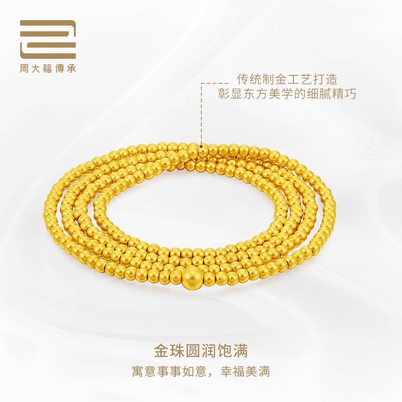 (Same style as shopping mall) Chow Tai Fook Inheritance Small Bead Bracelet Fu Chain Gold Bracelet F220152